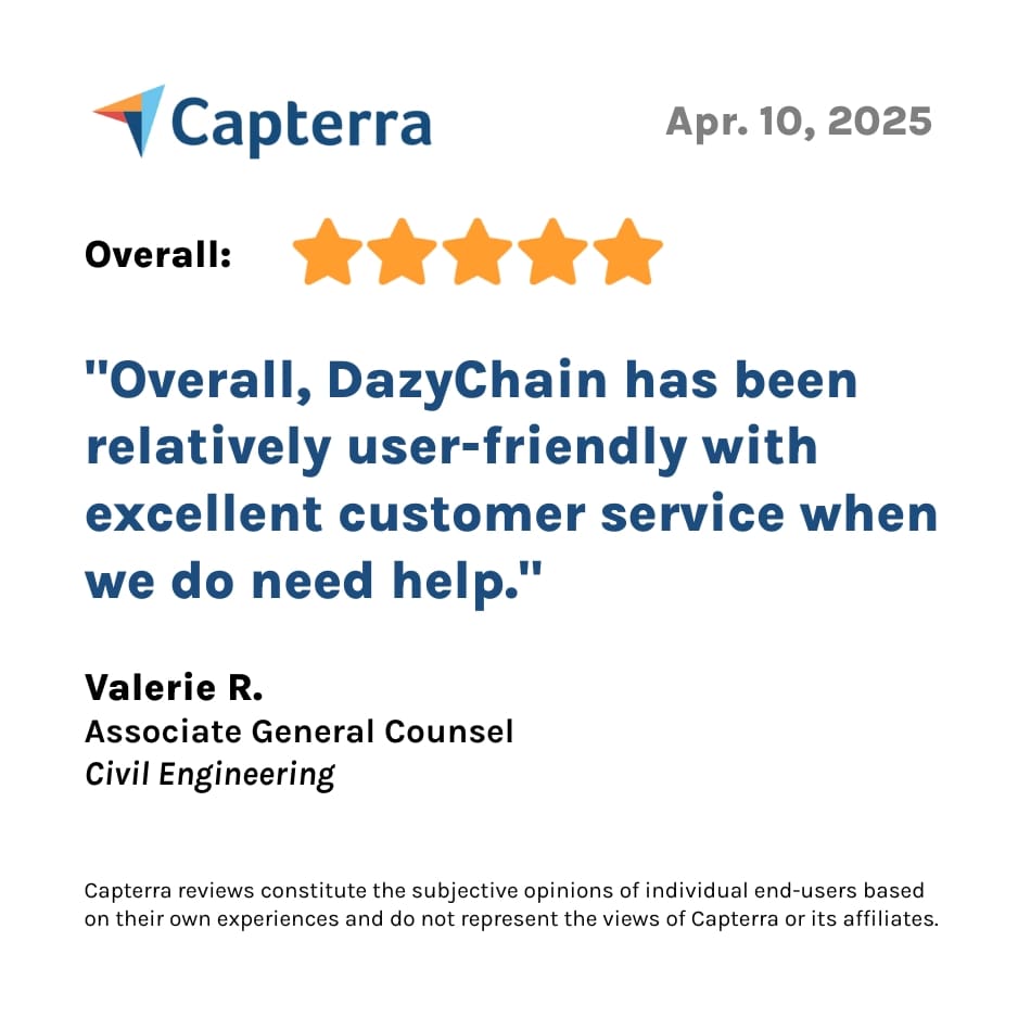 Dazychain streamlines legal operations with a single, centralized platform for in-house legal teams. It boosts efficiency, enhances collaboration, strengthens compliance, reduces risk, delivers powerful insights, and keeps legal spend under control. Dazychain makes managing legal matters easy.